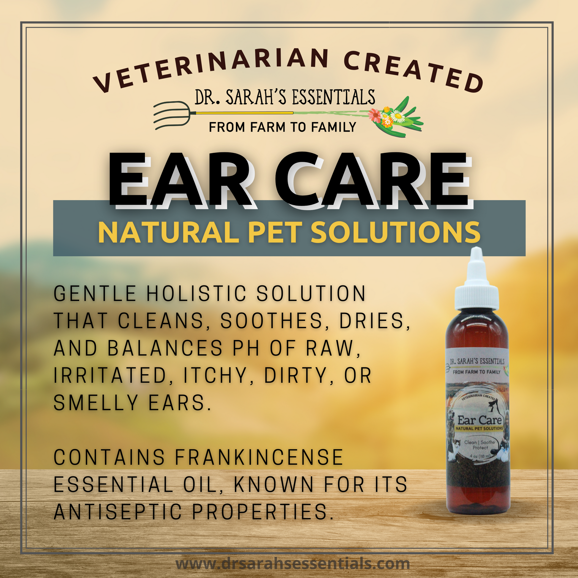 Ear Care | 4 oz | Gentle holistic solution that cleans, soothes, dries, and balances pH of raw, irritated, itchy, dirty, or smelly ears.