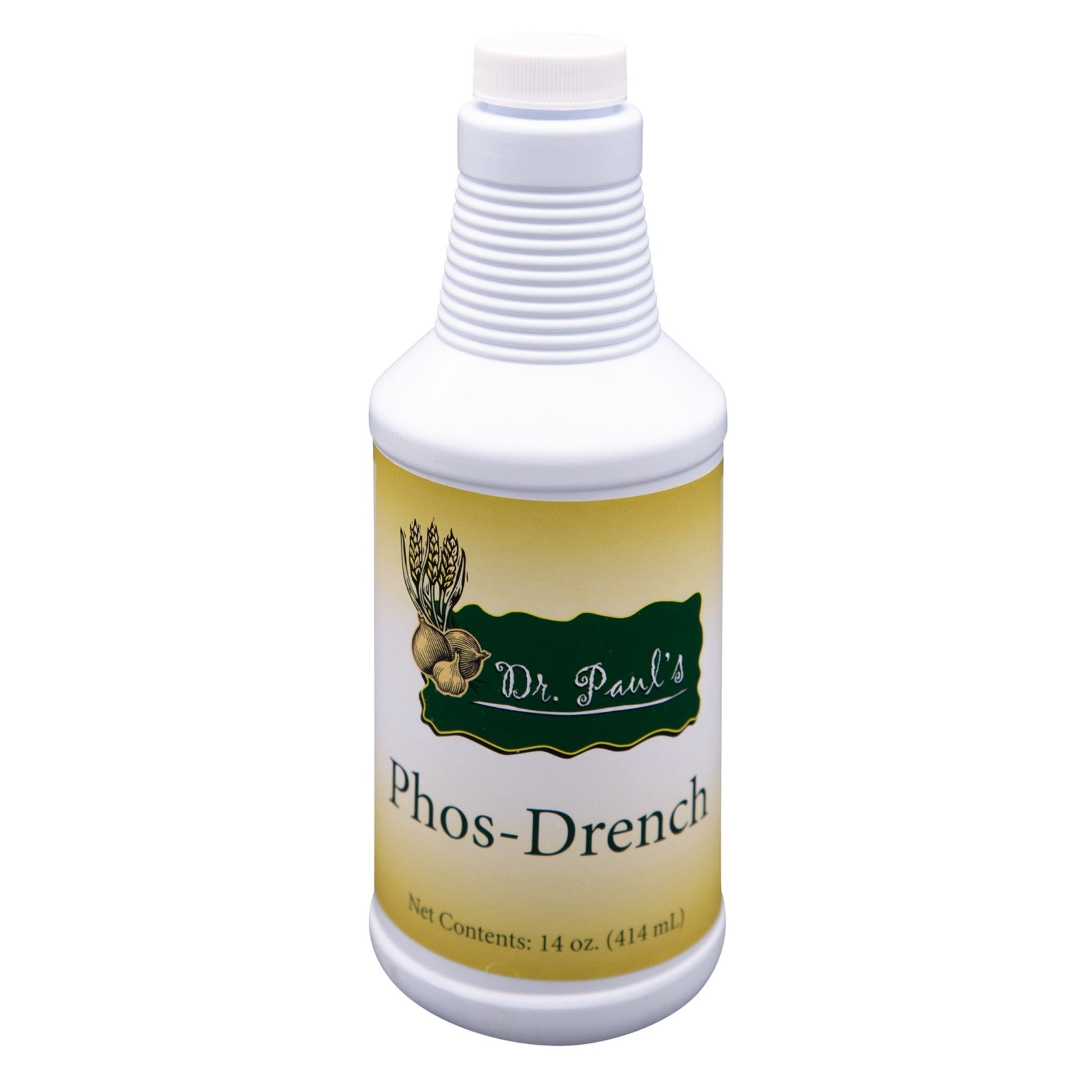 Suggestion: Warm up the Phos Drench and shake vigorously before dosing. Having some extra water around to add to the bottle when done drenching to get into suspension any of the solids that may have settled out and is helpful with washing down the product also. Never drench a cow that is laying flat out or unable to swallow.