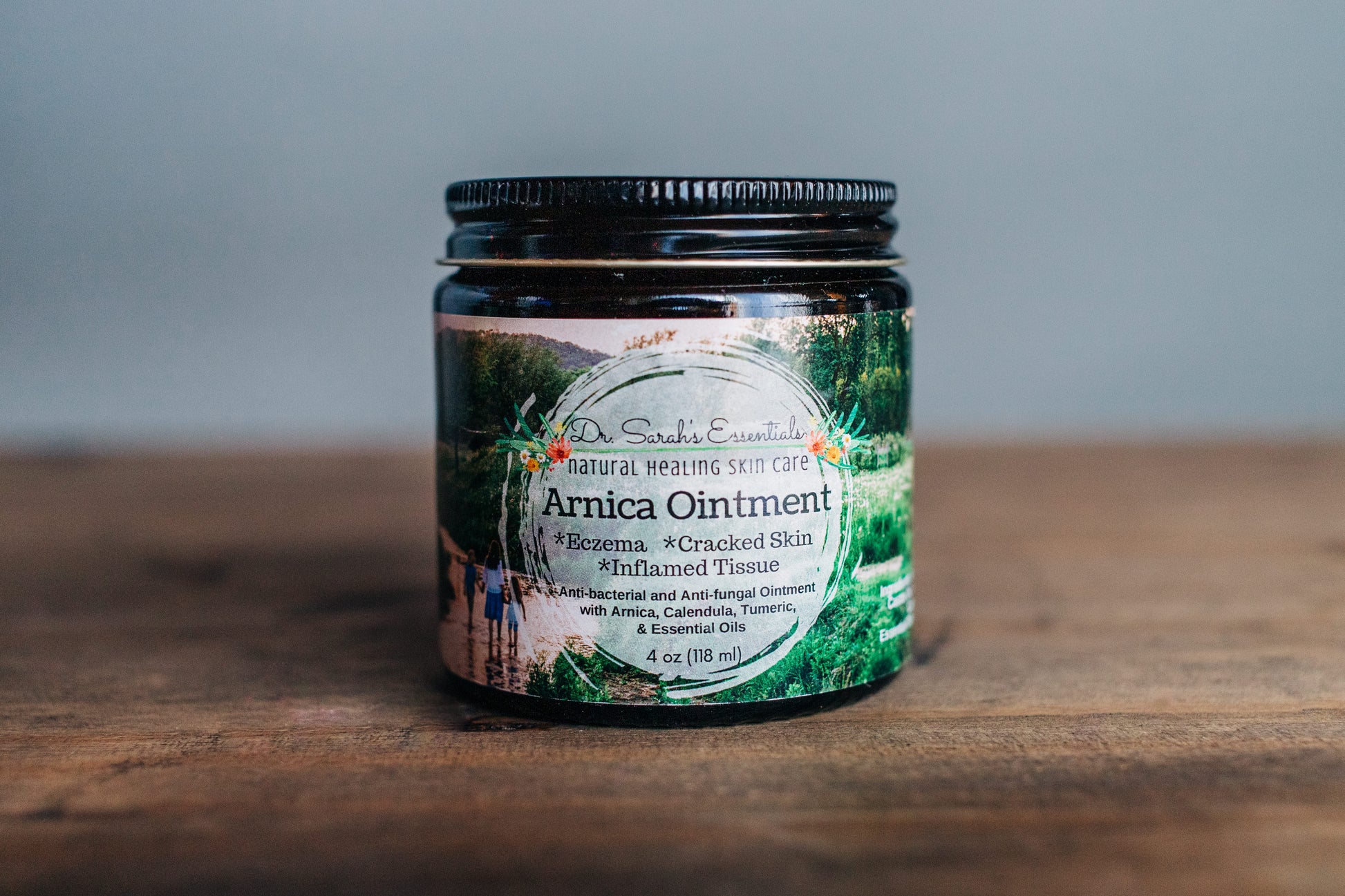 Arnica Ointment (4 oz) is a 100% natural ointment that is great for eczema, cracked skin, or inflamed tissue. This anti-bacterial and anti-fungal ointment with arnica, calendula, turmeric, and essential oils can be messaged into bruised, injured, inflamed, or infected tissue.
